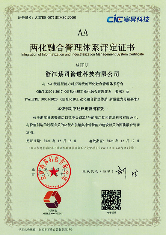 兩化融合體係證(zhèng)書
